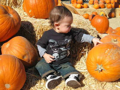 We also took the baby to the pumpkin patch. They don't really have pumpkin patches around here, except Schnepf Farms. They charge $15 a person to get in, and I wasn't about to pay $45 to get a picture of the baby in front of some pumpkins, you know what I mean? Maybe if he was older and could enjoy some of the other stuff they had going on there, and maybe if we had more disposable income, but right now? No way in hell.